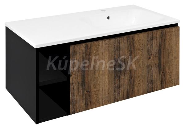 Sapho LOREA skrinka s umývadlom 101x46x51,5cm (20a80 cm), pravá, dub collingwood/čierna ma