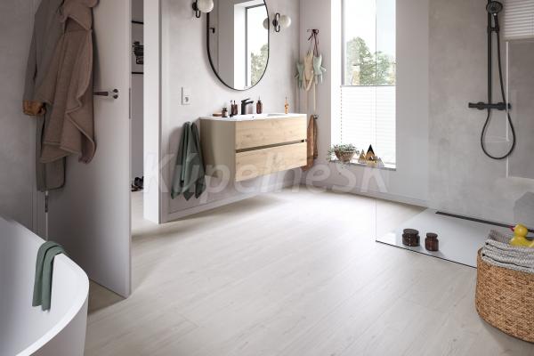 Jaseň Trondheimský je veľmi biely dekor dreva so svetlou sivou hrou farieb. Severská, prírodná a pokojná podlaha je ideálna pre povrchy, ktoré potrebujú zostať nenápadné, no stále majú drevený charakter. Podlahové dosky vo formáte Classic zvýraznia celkový dojem z priestoru. 4- stranné priznané drážky po celom obvode zvýrazňujú vzhľad jednotlivých podlahových dosiek. Tento dekor je súčasťou konceptu Interior match. Je dekorovo zhodný s nábytkovým dekorom H1225 ST12 z Kolekcie dekoratívnych materiálov EGGER 2024+.