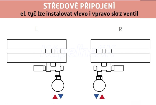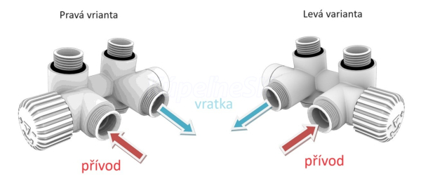 Ventil je určený na pripojenie radiátorov na rozvody TÚV s vývodom zo steny. JE možné kombinovať s elektrickou vykurovacou tyčou.