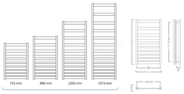 • 400 × 753 mm, výkon 284 W, (vykurovacia tyč 300 W)