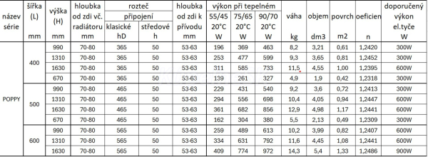 Dostupné rozmery radiátora POPPY kúpeľne: