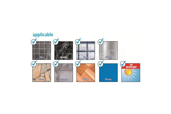- na dlaždice, kov, prírodný kameň, mramor, betón, drevo, sklo a mnohé druhy plastov