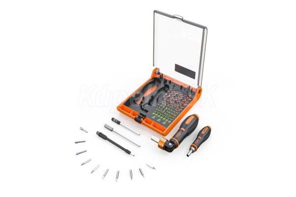 Sada ručného náradia na presnú prácu, 73ks. Náradie vhodné na opravu všetkej drobnej elektroniky, počítačov, telefónov, hodiniek a iných zariadení jemnej mechaniky. Základ sady tvorí 1 skrutkovač menší s protišmykovým povrchom a račňou, 1 skrutkovač väčší s protišmykovým