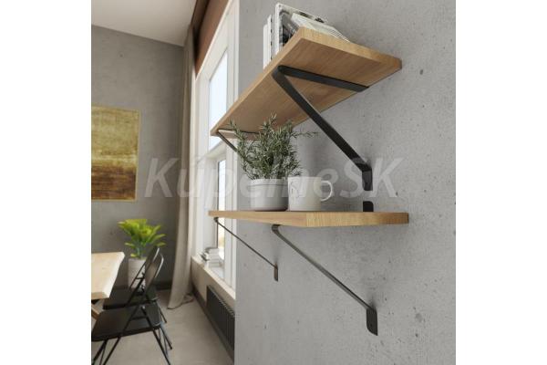 Uhlová konzola GAND 35° v matnej čiernej farbe, šírka 220 mm, výška 250 mm, nosnosť 30 kg hmotnosť 397 g, materiál oceľ na konzolu je možné namontovať drevenú dosku podľa vlastného výberu Vrátane 1 konzoly