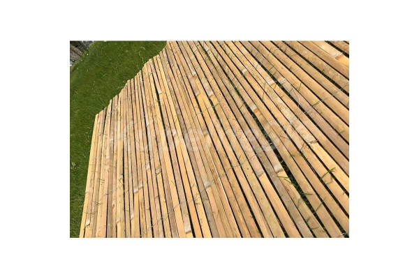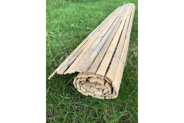 Štiepaná bambusová rohož Vhodné na zatienenie alebo predelenie priestorov, na ploty, zábradlia, ako tienenie skleníkov atď. Stonky spojené silným pozinkovaným oceľovým drôtom Balené vo vrecku proti poškodeniu Rozmery: výška 1 m, dĺžka 5 m