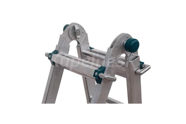 hliníkový rebrík multifunkčný, možno ho zložiť na jednoduchý alebo dvojitý (A) rozmery jednotné: dĺžka 4,16 m Rozmery dvojitého (A): dĺžka 1,13 - 1,96 m Rozmery lešenia: dĺžka 1,07 - 1,2 m nosnosť: 150 kg hmotnosť: 13,5 kg Hrúbka profilu: 3,5 mm