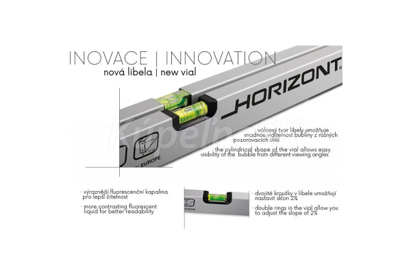 Presnosť 0,5 mm/m = 0,0285° Horizontálna optická vodováha (zvyšuje presnosť merania) kvapalina v libele je UV stabilizovaná a fluorescenčná 10-ročná záruka na vodováhu vodováha je odolná voči prevádzkovým otrasom povrch odolný voči oderu hrúbka steny