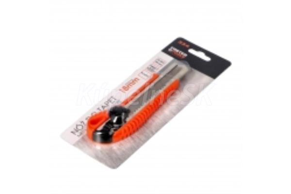 celokovové telo noža protišmyková rukoväť s plastovými výstupkami kovová vodiaca lišta zaistenie skrutkou šírka čepele 18 mm