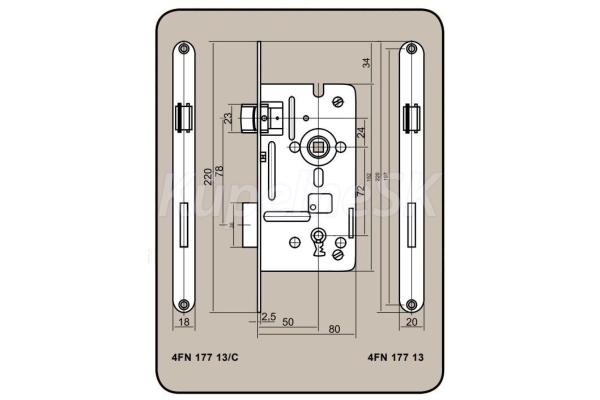 stavebný zámok V8072/5 bežný zámok bez prevodovky určený pre jednoduché a dvojité dvere vpravo alebo vľavo rozstup: 72 mm Hĺbka zásypu: 80 mm šírka čelnej strany: 20 mm zadné nastavenie: 50 mm povrchová úprava: biely zinok hmotnosť: 0,44 kg/ks nie sú určené pre požiarne/dymové dvere a únikové cesty