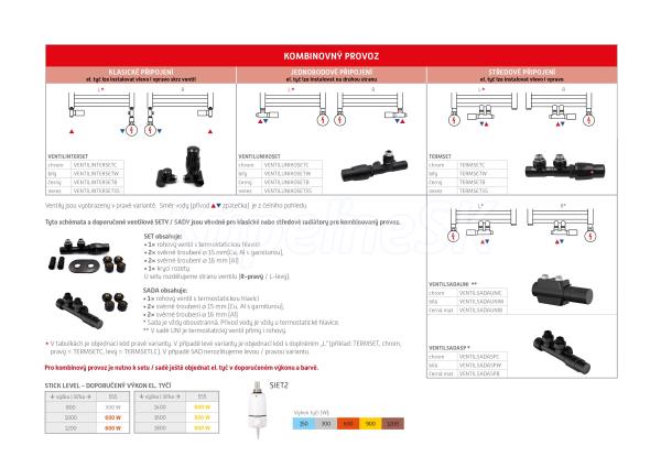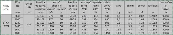- 1000 × 555 mm, výkon 554 W, vykurovacia tyč 600 W - BOČNÉ PRIPOJENIE