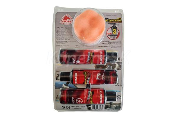 sada produktov na renováciu automobilov na použitie s vŕtačkou musí sa používať elektrická alebo akumulátorová vŕtačka sada 3 pascí - renovácia krytov svetiel, renovácia kolies, renovácia karosérie renovácia krytov svetiel: odstraňuje škrabance a obnovuje odolnosť, naneste pastu pomocou hubky a gumového kotúča Renovácia kolies: zakryje škrabance nanesením a vyleštením pasty pomocou hubky a gumového kotúča, vhodné pre všetky typy kolies renovácia karosérie: vyhladzuje škrabance na karosérii nanesením pasty pomocou špongiového kotúča, vhodná pre všetky farby