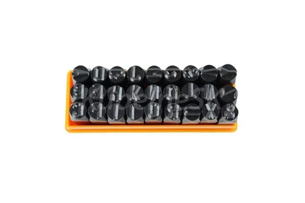 ručné raznice písmen abecedy - sada vyrobené z ocele, pevnosť do 800 N/mm zakalené hroty - vysoká tvrdosť rozmery: výška písmen - 6 alebo 8 mm sada 27 ks