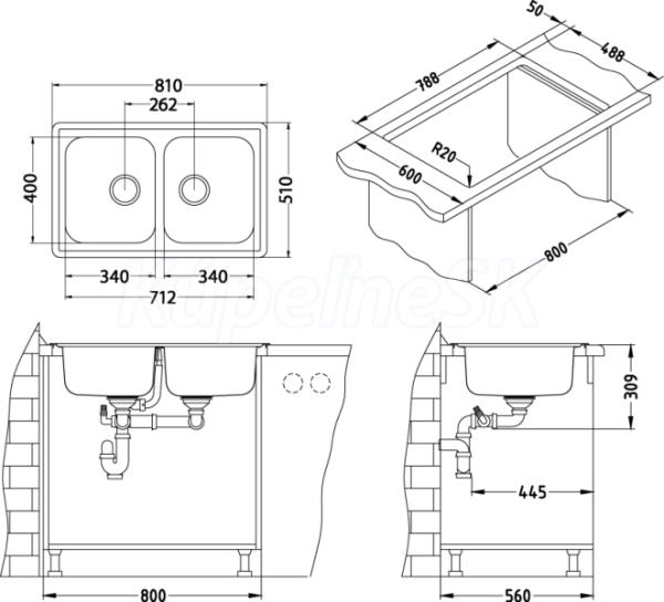 Váha: 5,66 kg Vestavěný dřez , dvě vaničky