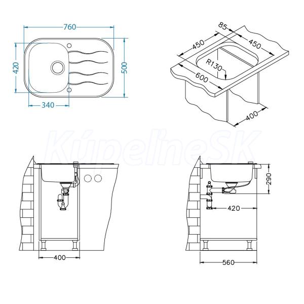 Inštalácia do skrinky so šírkou 450 mm Vestavěný dřez, univerzal