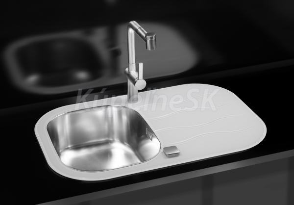 Alveus WAVE 20 F Vstavaný nerez/sklo drez 760x500x175 mm,odkvap. plocha,Satin/Biela sifón