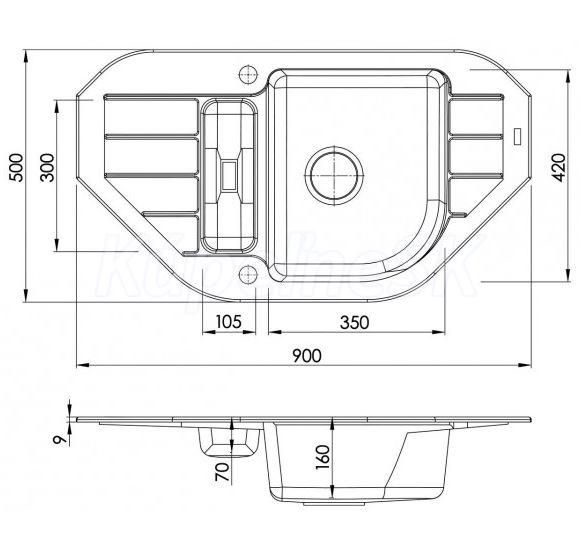 Instalace do skříňky o šířce 600 mm, roh 900 mm