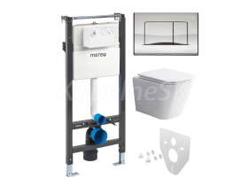 Mereo WC set - Rimless WC hranaté, modul pre sadrokartón, chróm hranaté tlačidlo lesklé
