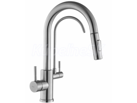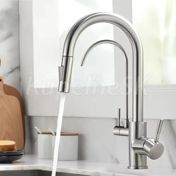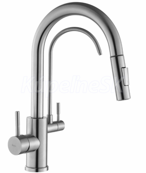 REA Eco Fresh kuchynská-drezová batéria s vyťahovacou koncovkou a prepínačom brúsený Nikel