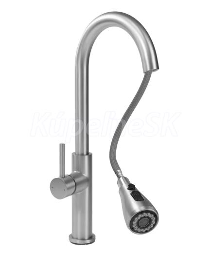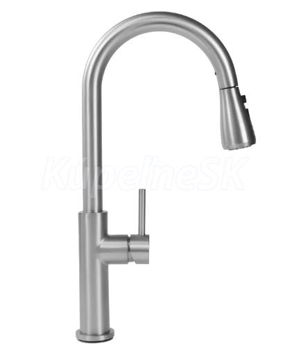 REA Nest kuchynská-drezová stojánková batéria s vyťahovacou sprškou brúsený Nikel