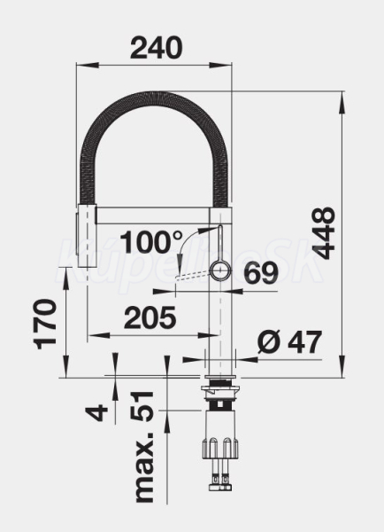 vysoký oblúk a flexibilná hadica pre voľnosť pohybu