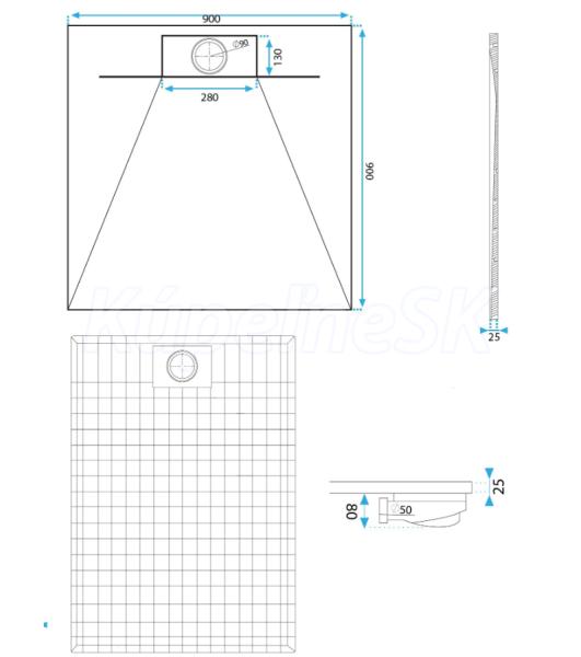 >>  Sprchové vaničky  >>  Akrylátové sprchové vaničky  >>  Rohové vaničky akrylátové  >>  REA Bazalt štvorcová sprchová vanička 900x900x25 mm so sifónom SMC Šedá