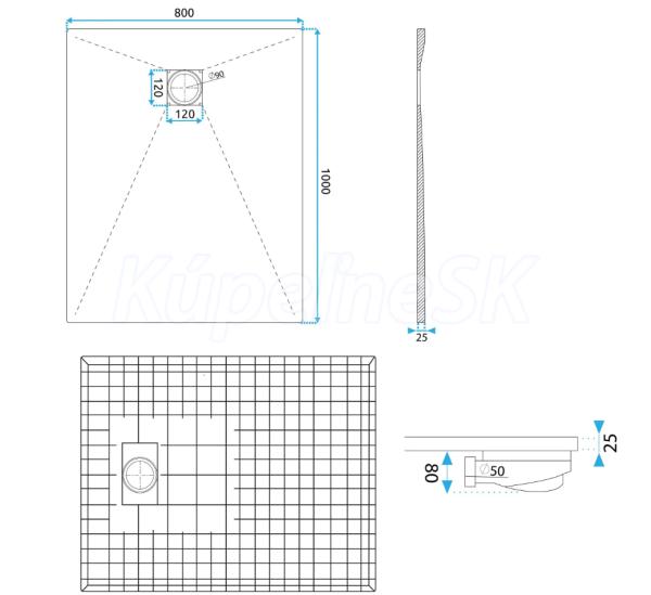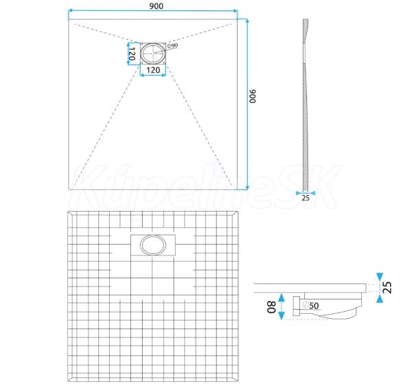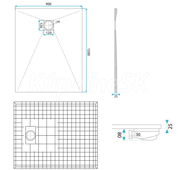REA Magnum obdĺžniková sprchová vanička 900x1200x25 mm so sifónom SMC Šedá
