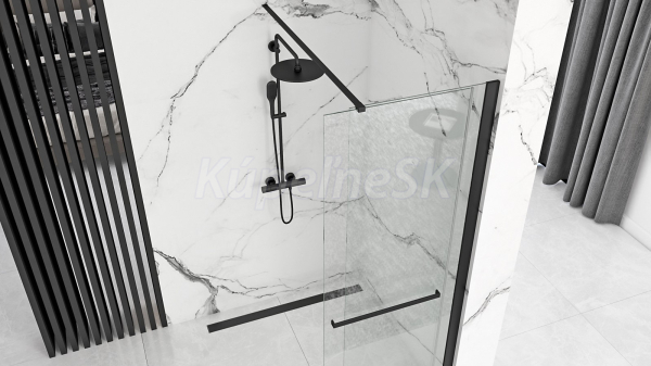 REA Cortis Black Walk-In sprchová zástena 120x199,5cm s pohyblivou stenou,sklo Číre+vzpera