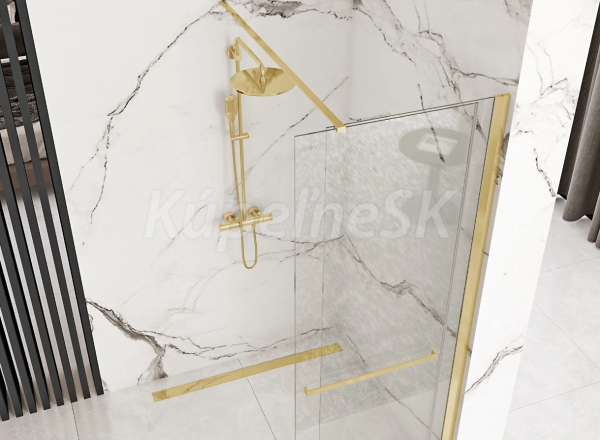 REA Cortis Walk-In sprchová zástena 120x199,5 cm s pohyblivou stenou,Číre/Zlatá+vzpera