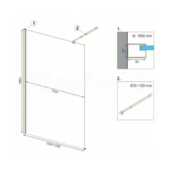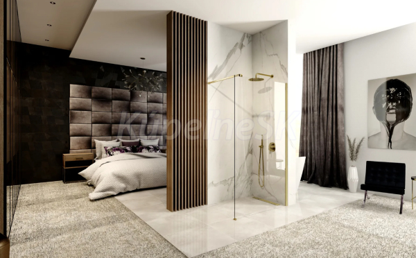 >>  Sprchové kúty a žľaby  >>  Walk In sprchové kúty  >>  REA Aero Walk-In sprchová zástena k stene 110x195 cm sklo Číre rám brúsené Zlato+vzpera