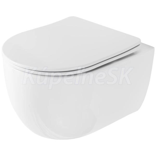 REA Olivier Rimless WC závesné 49x37 cm Biele lesklé+WC sedátko Biele lesklé