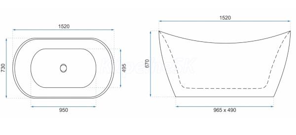REA Kerrano voľne stojaca akrylátová vaňa 152x73 cm so sifónom Biela