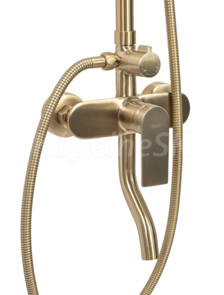 REA Verso sprchový stĺp s pákovou batériou, hlavová, ručná sprcha brúsené Zlato P9146