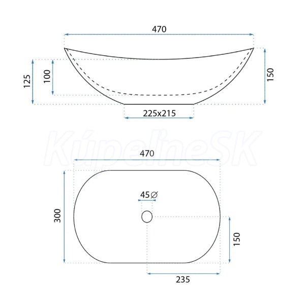 >>  Umývadlá  >>  Umývadlá na dosku  >>  REA Royal Mini keramické oválne umývadlo na dosku 47x30 cm Čierna/Biela lesklé U0538