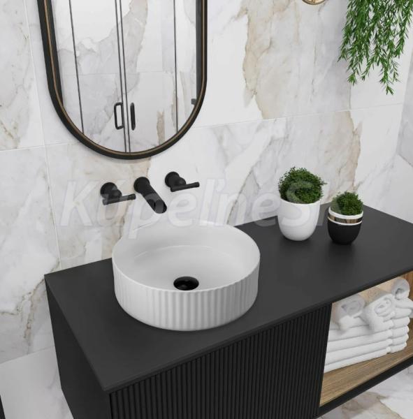 Predstavujeme vám umývadlo na dosku, ktoré zabezpečí vašej kúpeľni moderný vzhľad a vysokú funkčnosť. Umyvadlo je vyrobené z vysoko kvalitnej sanity. Vonkajší povrch je ryfľovaný, čo vytvára zaujímavý vizuálny efekt a dodáva kúpeľni jedinečný charakter.