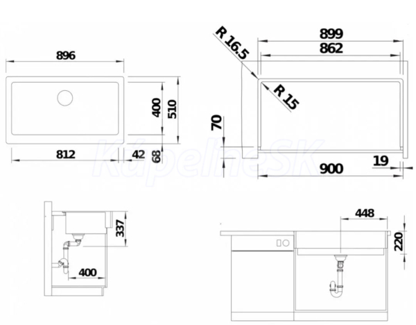 Blanco drez v rovine pod prac.dosku VINTERA XL 9-UF SILGRANIT káva