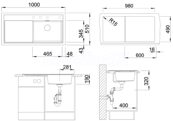 Blanco vstavaný drez ZENAR XL 6 S SILGRANIT 100x51 cm InFino s excentrom čierna