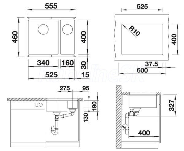 >>  KUCHYNE - Kuchynský tovar  >>  Kuchynské drezy  >>  Granitové drezy  >>  Blanco drez pod prac.dosku SUBLINE 340/160-U SILGRANIT 55,5x46 cm sivá vulkán 527346