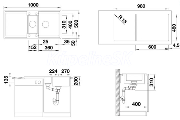 >>  KUCHYNE - Kuchynský tovar  >>  Kuchynské drezy  >>  Granitové drezy  >>  Blanco vstavaný drez ADIRA 6 S SILGRANIT 100x50 cm InFino s excentrom biela