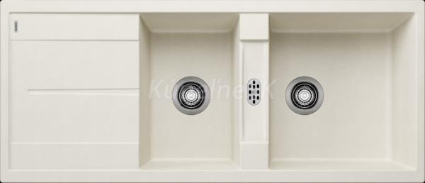 Blanco vstavaný drez METRA 8 S SILGRANIT biela soft SILGRANIT® Čistá línia s komfortom atraktívny dizajn s čistým líniami obzvlášť priestranná vanička poskytuje neprekonateľne veľa miesta pri umývaní funkčnú odkvapkávaciu plochu možno využiť aj ako pracovnú zónu v ponuke široké príslušenstvo, ktoré zvyšuje komfort pri užívaní drezu esteticky ploché prevedenie okraja V balení tohto drezu sa nachádza: Odtoková armatúra, dve 3 1" výpuste so sitkami, bez excentrického ovládania, zápachový uzáver s odbočkou pre umývačku riadu