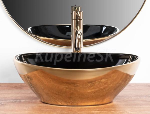 REA Sofia keramické oválne umývadlo na dosku 41x34,5 cm Zlatá lesklá/Čierna lesklá U4527