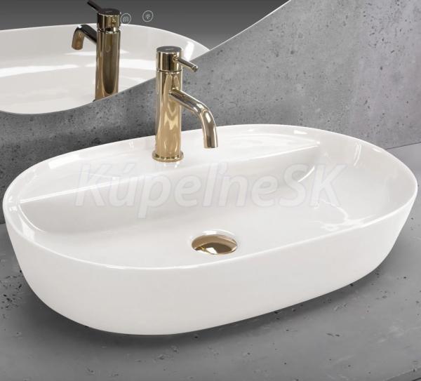REA Aura 61 Ecru Shiny keramické oválne umývadlo na dosku 61x41 cm U4589