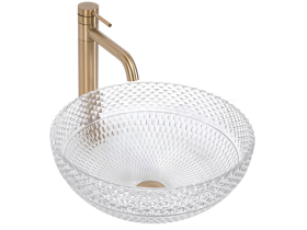 Kryštálová umývadlo na dosku Sue je výnimočným prvkom vybavenia kúpeľne, ktorý spája eleganciu a funkčnosť. Vyrobené z vysoko kvalitného tvrdeného skla, očarí precízne zdobeným povrchom s pôsobivým diamantovým vzorom, ktorý pekne odráža svetlo a dodáva interiéru luxusný charakter. Vďaka svojej konštrukcii je vhodné na montáž na dosku alebo na skrinku, čo umožňuje voľné prispôsobenie rôznym aranžmánom. Je to výborná voľba pre osoby, ktoré chcú vo svojej kúpeľni pridať výnimočný štýl a eleganciu.