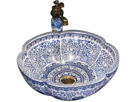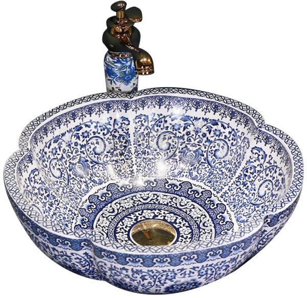 Umyvadlo vyrobené z najvyššej kvality keramiky v bielej farbe a okrúhlom tvare. Povrch s vysokým leskom spolu s modrým vzorom pridáva na elegancii, ozdobujúc pritom interiér. Bude sa hodiť ako praktické riešenie, celok je veľmi ľahko udržiavateľný.