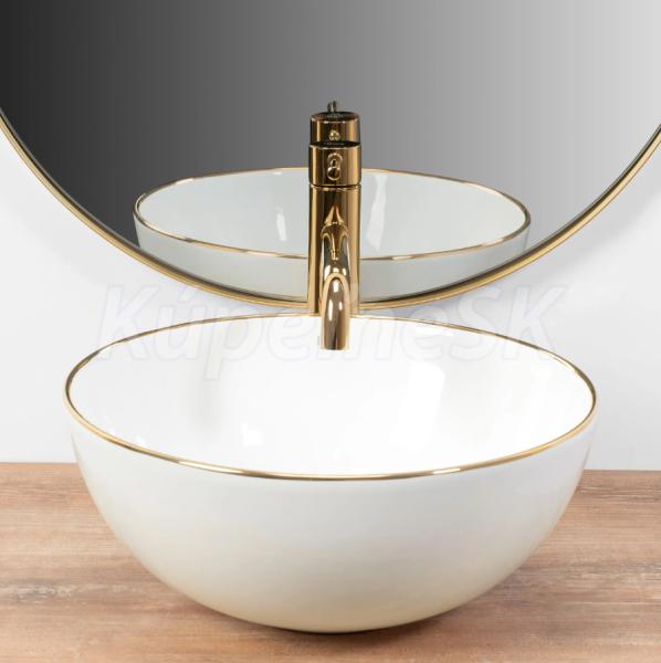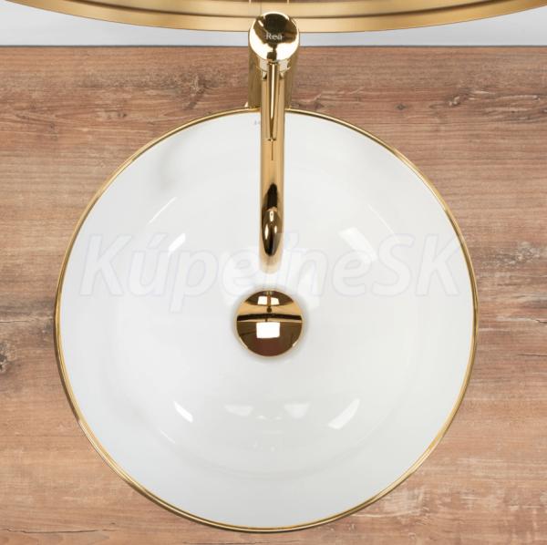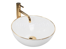 >>  Umývadlá  >>  Umývadlá na dosku  >>  REA Stella keramické okrúhle umývadlo na dosku priemer 35,5cm Biela lesk/Zlatý okraj U7445