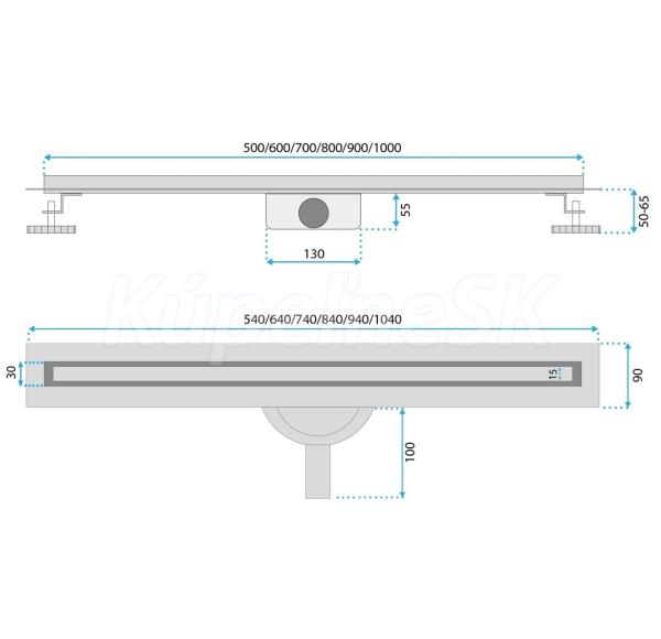 Rea Neox Slim Pro nerezový odtokový sprchový znížený žľab 2v1 900mm so sifónom brús. Nerez