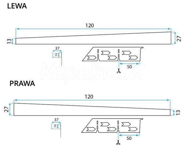 Krajová lišta je možné samostatne skrátiť každý 5 cm na požadovanú dĺžku.