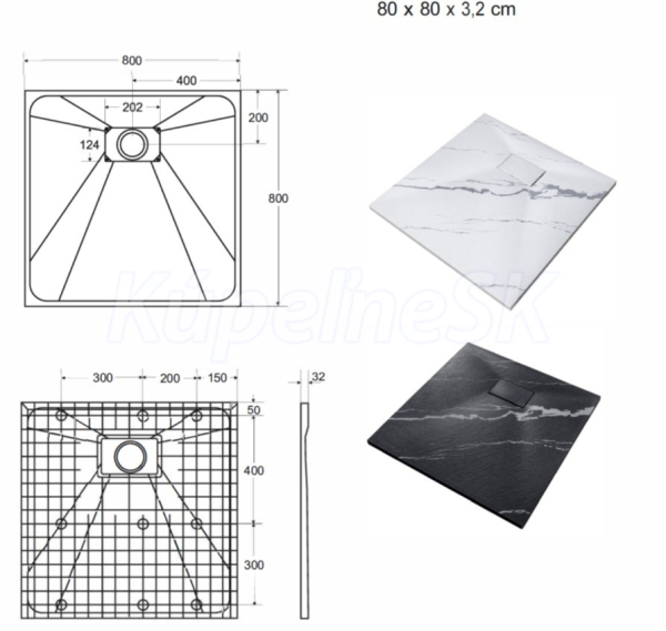 BESCO Štvorcová sprchová vanička VEXO MARBLE 80x80x3,2 cm Čierna