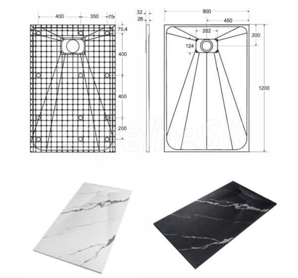 Elegantná ultratenká sprchová vanička VEXO MARBLE biela je vyrobená zo špeciálneho SMC materiálu. Dodáva sa vrátane sifónu, ale bez nožičiek. Krytka sifónu je súčasťou balenia.
