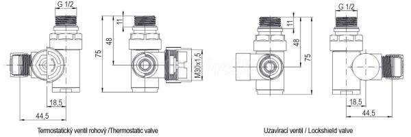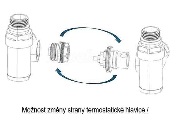 - obojstranný variant (ventil s termostatickou hlavicou môže byť vľavo aj vpravo)