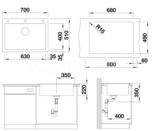 >>  KUCHYNE - Kuchynský tovar  >>  Kuchynské drezy  >>  Granitové drezy  >>  Blanco vstavaný drez PLEON 8 CU SILGRANIT 70x51 cm čierna